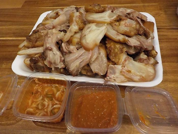 떡볶이와 팥 도너츠로는 성이 차지 않아서 그 근처에 있는 작은 시장 족발집에도 들렸습니다.