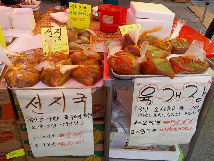 뭘 살까 고민하다가 선짓국 만 원어치 포장했습니다.