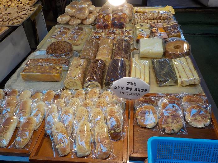 아주 친숙한 비주얼의 빵과 아주 친숙한 비주얼의 도넛류를 파는 시장빵집인데, 저처럼 빵 좋아하는 사람이라면 그냥 지나치기 어려운 곳입니다.