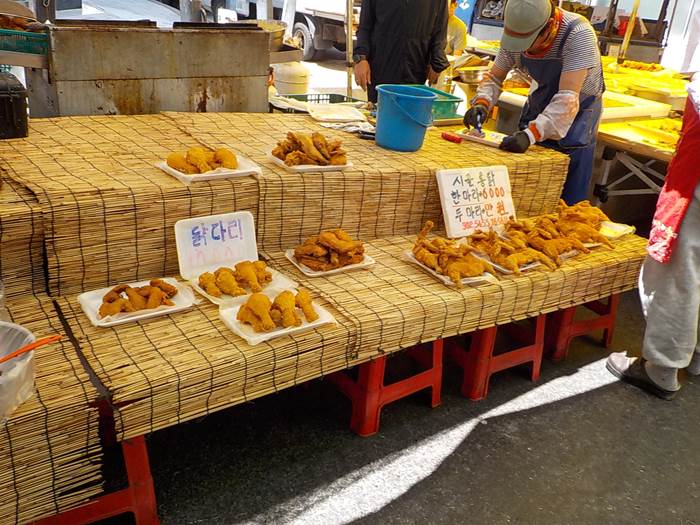 특히나 먹거리 구경은 빼놓을 수 없는 즐거움... 작은 닭이긴 하지만, 통닭 두 마리 만 원...